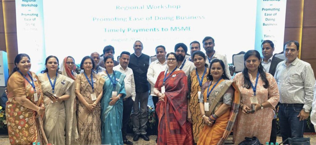 आज 8 अगस्त 2025 दिन शुक्रवार को होटल कोर्टयार्ड, रायपुर में लघु एवं मध्यम उद्यम (एमएसएमई) क्षेत्र को समय पर भुगतान और उनके कारोबार को बढ़ावा देने के उद्देश्य से आयोजित एक महत्वपूर्ण क्षेत्रीय कार्यशाला में, छत्तीसगढ़ चेंबर ऑफ कॉमर्स एंड इंडस्ट्रीज के प्रदेश अध्यक्ष सतीश थौरानी के नेतृत्व में चेंबर प्रतिनिधिमंडल ने भाग लिया।