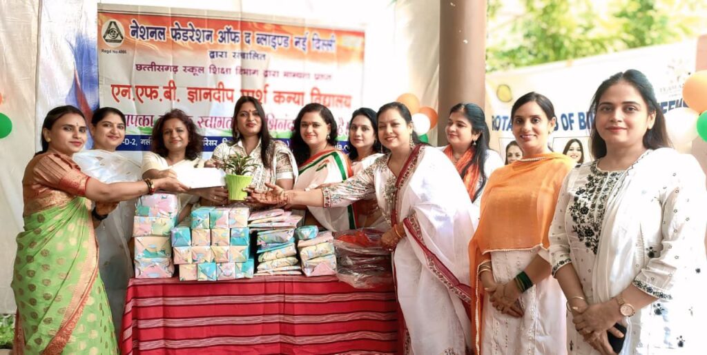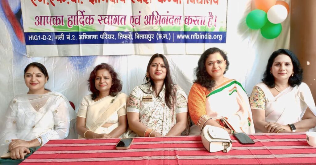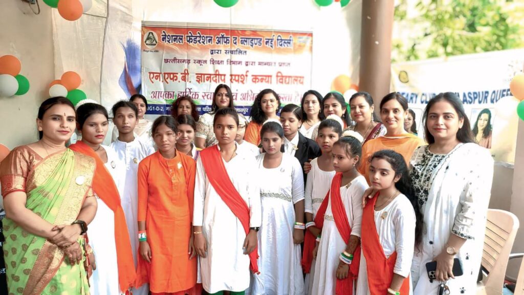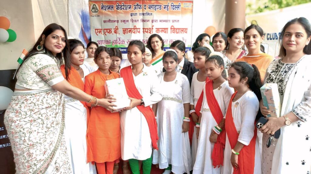 बिलासपुर-{जनहित न्यूज़} स्वतंत्रता दिवस के पावन अवसर पर रोटरी क्वीन्स बिलासपुर ने एक अनोखी मिसाल पेश की, जब उन्होंने एन.एफ.बी. ज्ञानदीप स्पर्श कन्या विद्यालय पहुँचकर दृष्टिबाधित बालिकाओं के साथ यह राष्ट्रीय पर्व मनाया। नेशनल फेडरेशन ऑफ द ब्लाइंड, नई दिल्ली द्वारा संचालित और छत्तीसगढ़ स्कूल शिक्षा विभाग से मान्यता प्राप्त इस विद्यालय की प्रतिभाशाली बालिकाओं ने अपने हुनर से सभी का दिल जीत लिया।