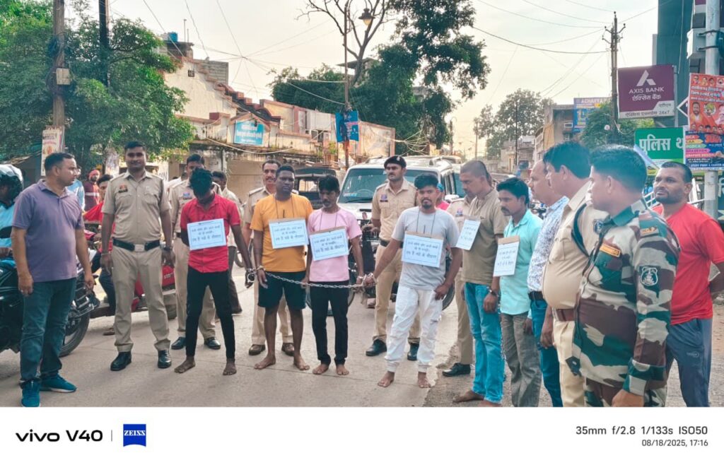 मुंगेली पुलिस ने गिरफ्तार आरोपियों को पूरे शहर में पैदल जुलूस निकालते हुए हम हैं नशा के सौदागर हमसे बचिए और अपने बच्चों को भी बचाइए” का नारा लगवाया। इस अनोखी कार्रवाई से जहां शहरवासियों में जागरूकता फैली, वहीं अपराधियों में दहशत का माहौल दिखाई दिया।