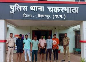 बिलासपुर-[जनहित न्यूज] चकरभाठा पुलिस द्वारा ट्रांसपोर्ट नगर शराब दुकान के सामने रोड पर शराब पीकर हुड़दंग करने वाले 06 बदमाशों के खिलाफ प्रतिबंधक कार्यवाही कर भेजा गया जेल।