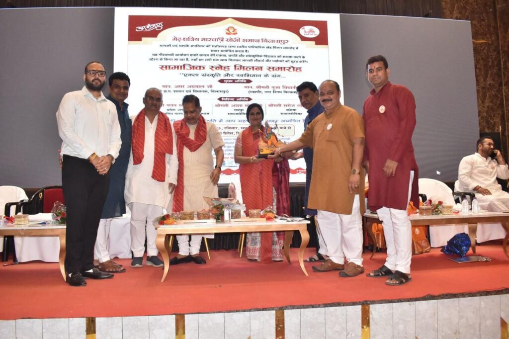 बिलासपुर-{जनहित न्यूज़} मैढ़ क्षत्रिय मारवाड़ी सोनी समाज द्वारा रविवार को यश पैलेस, बिलासपुर में भव्य राज्य स्तरीय स्नेह मिलन एवं सम्मान समारोह का आयोजन किया गया। यह आयोजन समाज की परंपरा, एकता और संस्कारों का अदभुत प्रतीक बना।