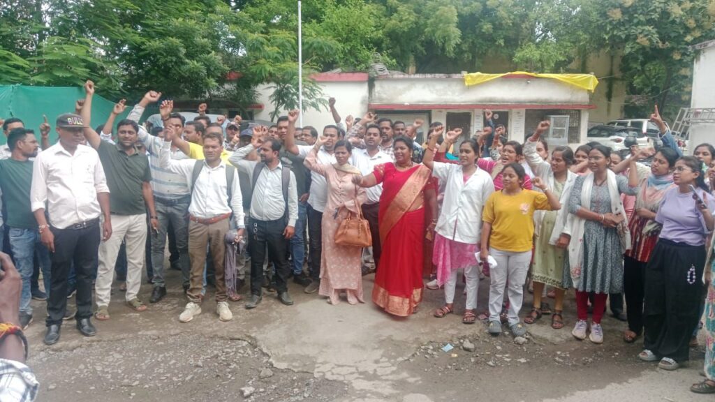 एनएचएम प्रांत अध्यक्ष की गिरफ्तारी से फूटा आक्रोश….! कार्यकर्ताओं ने घेरा सिविल लाइन थाना किया जमकर हंगामा…!