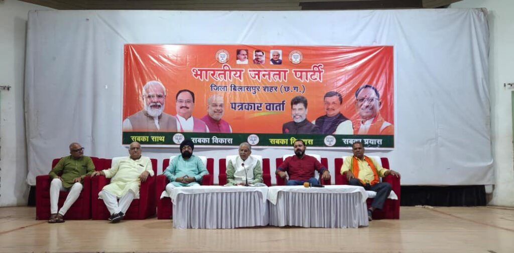 पत्रकार वार्ता में छत्तीसगढ़ राज्य अक्षय ऊर्जा अभिकरण के अध्यक्ष भूपेंद्र सवन्नी बिलासपुर जिला ग्रामीण के अध्यक्ष मोहित जायसवाल बिलासपुर जिला शहर के अध्यक्ष दीपक सिंह भाजपा के जिला कोषाध्यक्ष गुलशन ऋषि मीडिया के प्रभारी प्रणव शर्मा के के शर्मा सह प्रभारी दुर्गेश पांडे सोशल मीडिया संयोजक देवेश खत्री मंडल अध्यक्ष शैलेंद्र यादवकी उपस्थिति रही।