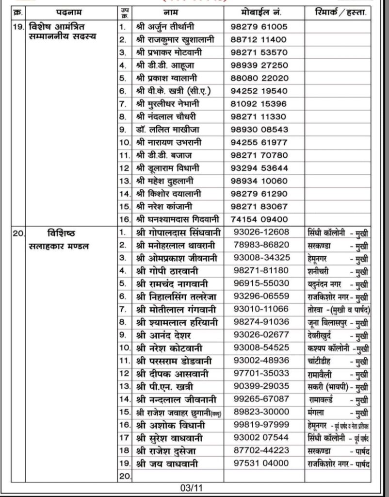 इसके साथ ही संरक्षकगण, मार्गदर्शक मंडल, सभापति, सलाहकार, उपाध्यक्ष, ऑडिटर, विशिष्ट महामंत्री, संगठन मंत्री, विधि सलाहकार और कार्यकारिणी सदस्य भी अपनी जिम्मेदारी निभाएंगे।