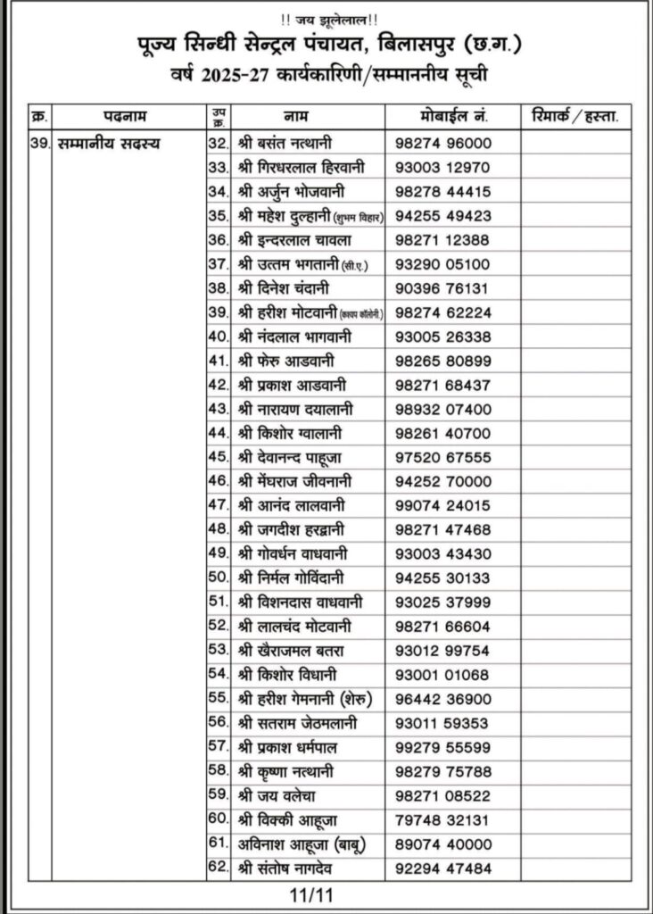 नई कार्यकारिणी के गठन से समाज में नई ऊर्जा और उत्साह का संचार हुआ है। समाजजनों ने उम्मीद जताई है कि आने वाले दिनों में सिंधी समाज सेवा, संस्कृति और एकता के नए आयाम स्थापित करेगा।