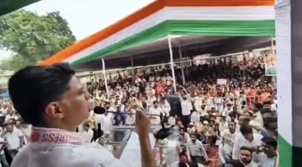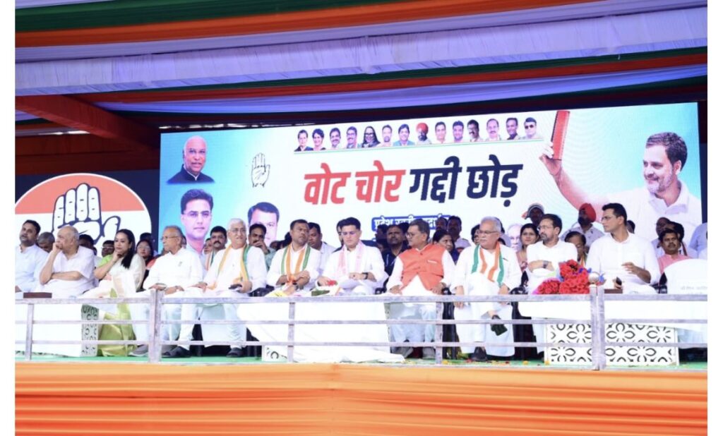 प्रदेश प्रभारी सचिन पायलट ने गरजते हुए कहा देश की जनता वोट चोरों को कभी माफ नहीं करेगी। यह लोकतंत्र की खुली हत्या है। चुनाव आयोग को जवाब देना होगा कि यह सारा षड्यंत्र कैसे हुआ और किसके इशारे पर हुआ।