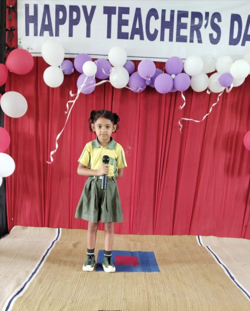 छोटे-छोटे बच्चों ने अपने शिक्षकों को श्रीफल भेंट कर सम्मान अर्पित किया और भावपूर्ण कविताएँ सुनाकर सभी को प्रभावित किया।