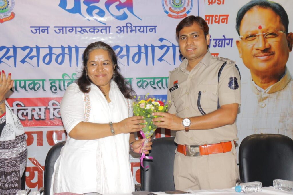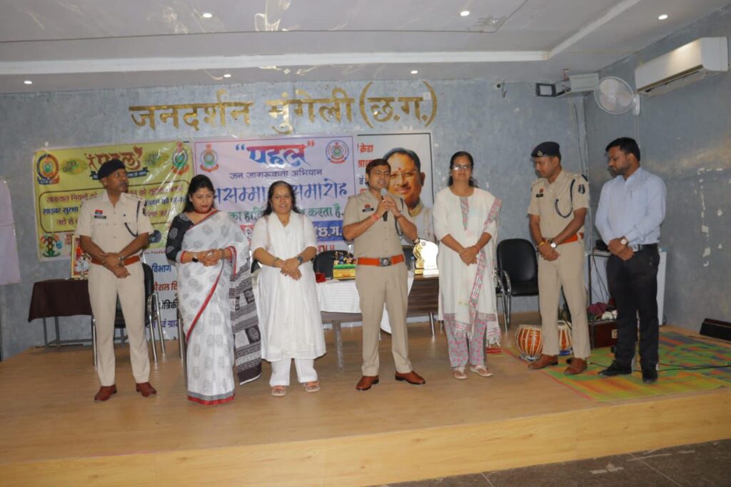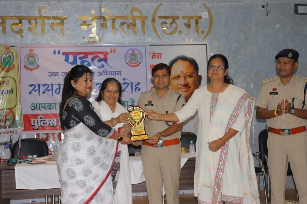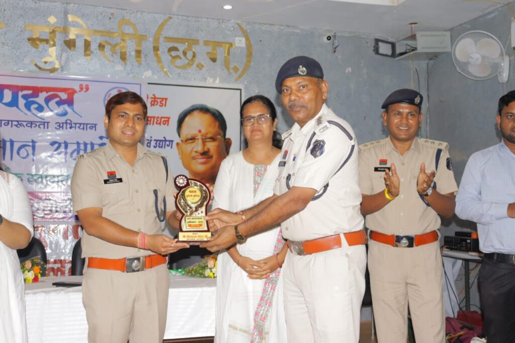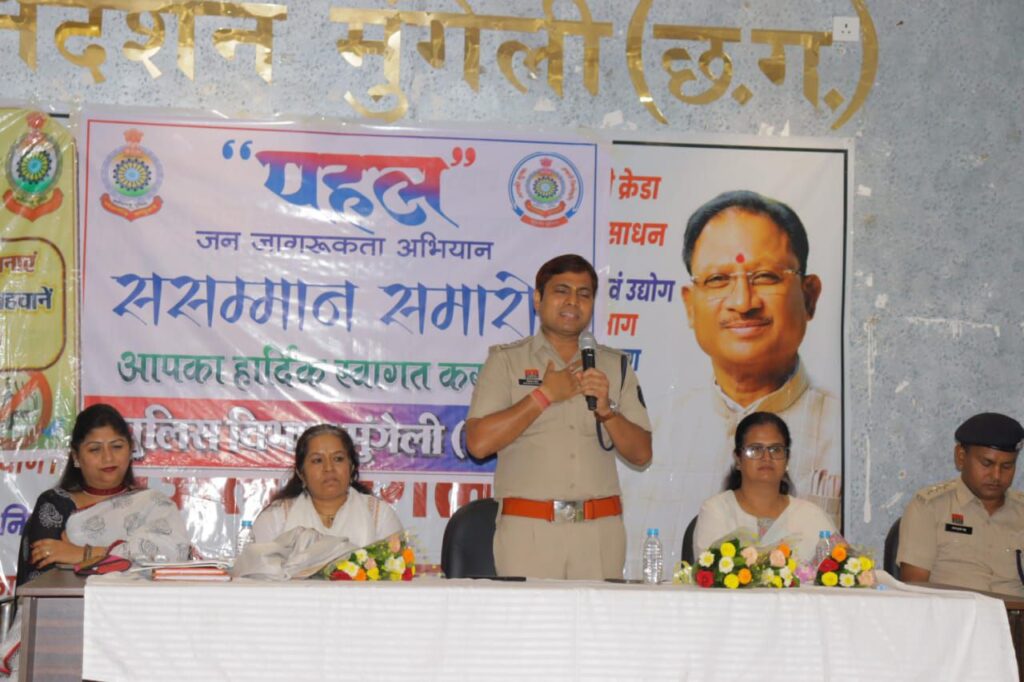 मुंगेली-{जनहित न्यूज़}जिला मुंगेली पुलिस अधिकारी हुये सम्मानित ग्रामीण एवं शहरीय 32 हजार से अधिक बच्चों को किया जागरूक मुंगेली पुलिस अधीक्षक भोजराम पटेल के द्वारा संचालित पहल जन जागरूकता अभियान के अंतर्गत जिला मुंगेली पुलिस ने पहल अभियान के उद्देश्यों को पूरा करने का बीड़ा उठाया था। उसी तरण्यमय में आज