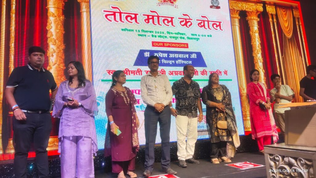 बिलासपुर-[जनहित न्यूज] अग्रसेन जयंती समारोह 2025 में आज अग्रवाल नवयुग समिति केद्वारा तोल मोल के बोल का आयोजन किया गया। जिसमें 200 से अधिक जोड़ों ने हिस्सा लिया। 400 प्रतिभागियों ने इस कार्यक्रम में दैनिक उपभोग की वस्तुओं का प्रोडक्ट का सही मूल्य बता बताकर सैकड़ो आकर्षक उपहार जीते हैं। फाइनल राउंड जीतने वाले प्रतिभागी को डायमंड का सेट उपहार के रूप में दिया गया। इसके अलावा इलेक्ट्रॉनिक होम अप्लायंसेज वाशिंग मशीन तथा आकर्षक पुरस्कार प्रतिभागियों ने जीते।