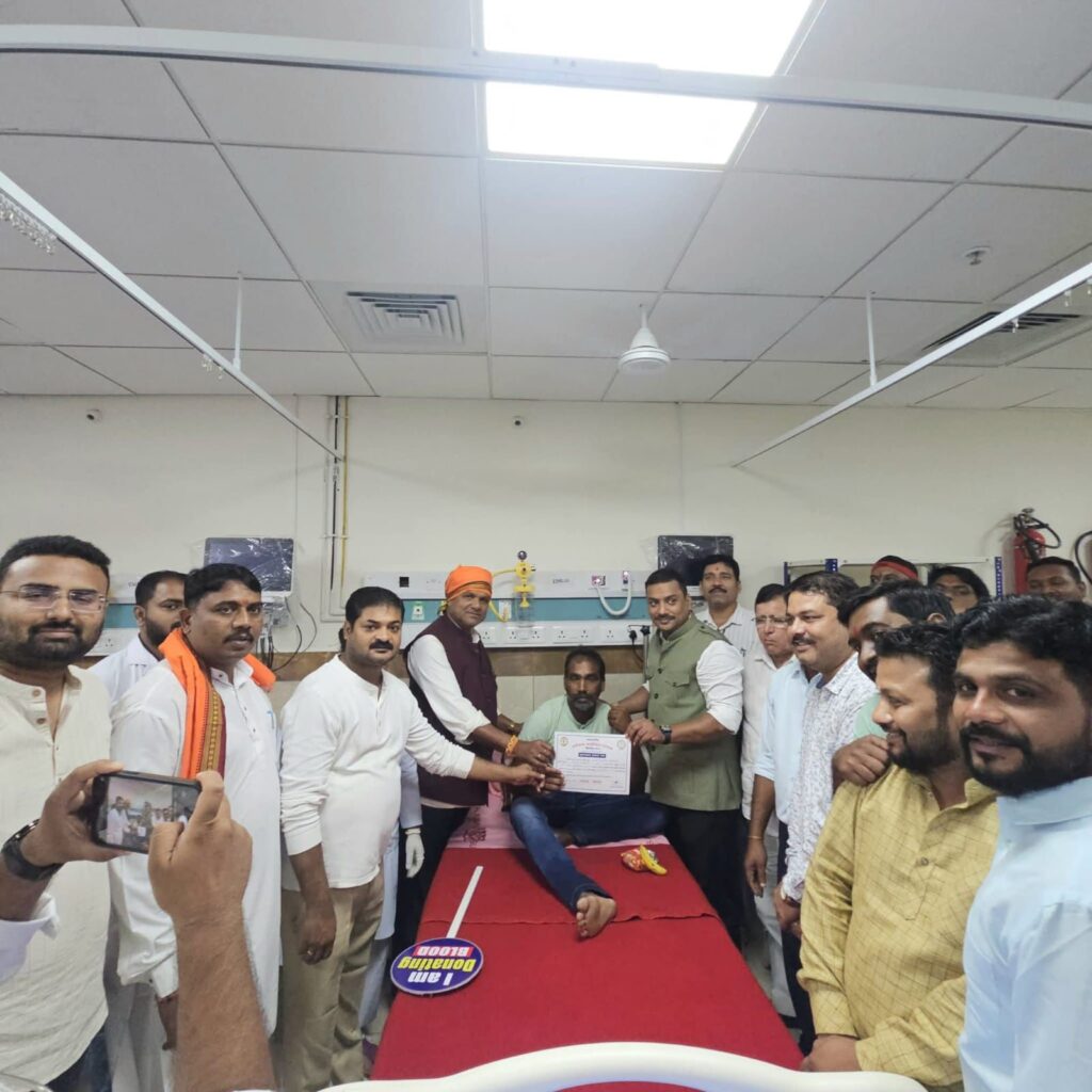 बिलासपुर-[जनहित न्यूज] प्रधानमंत्री नरेंद्र मोदी के जन्मदिन को भाजपा कार्यकर्ताओं ने अनोखे अंदाज़ में सेलिब्रेट किया मोदी जी को उम्र के 75 वें पड़ाव पर भाजपा कार्यकर्ताओं ने रक्तदान स्वच्छता और वृक्षारोपण अभियान चलाया भाजपा ग्रामीण जिला के तत्वाधान में मल्टी स्पेशियलिटी हॉस्पिटल कोनी में युवामोर्चा के सदस्यों ने 75 यूनिट रक्तदान किए इस दौरान प्रधानमंत्री ने 12.30 बजे पूरे देश को संबोधित किया। जिसे देवकीनंदन सभा गृह में आयोजित वर्चुअल कार्यक्रम के माध्यम से प्रधानमंत्री नरेंद्र मोदी ने मध्यप्रदेश के धार से पूरे देश को संबोधित कर सेवा पखवाड़ा 2025 की ओपचारिक शुरुवात की प्रधानमंत्री ने आज से स्वस्थ नारी सशक्त परिवार अभियान का भी सूत्रपात किया।
