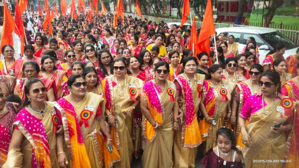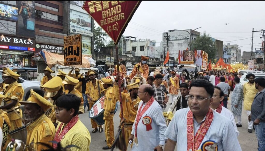 बिलासपुर-[जनहित न्यूज] अग्रसेन जयंती समारोह के अवसर पर आज अग्रवाल समाज ने शहर में भव्य शोभा यात्रा निकाली। पारंपरिक वेशभूषा में अग्रवाल समाज के महिलाएं बच्चे युवा शोभा यात्रा में शामिल हुए, आदिवासी लोक कला परंपरा का दृश्य, सामाजिक सरोकार और अग्रवाल समाज की एकजुटता दिखाई। शोभा यात्रा की झांकीमें गौ माता की सेवा,गांव का दृश्य, और व्यापार नहीं समाज में सेवा भावना का संदेश दिया गया। साथ ही आदिवासी लोक कला नित्य का भी प्रदर्शन बस्तर के आदिवासी लोक कलाकारों ने किया।