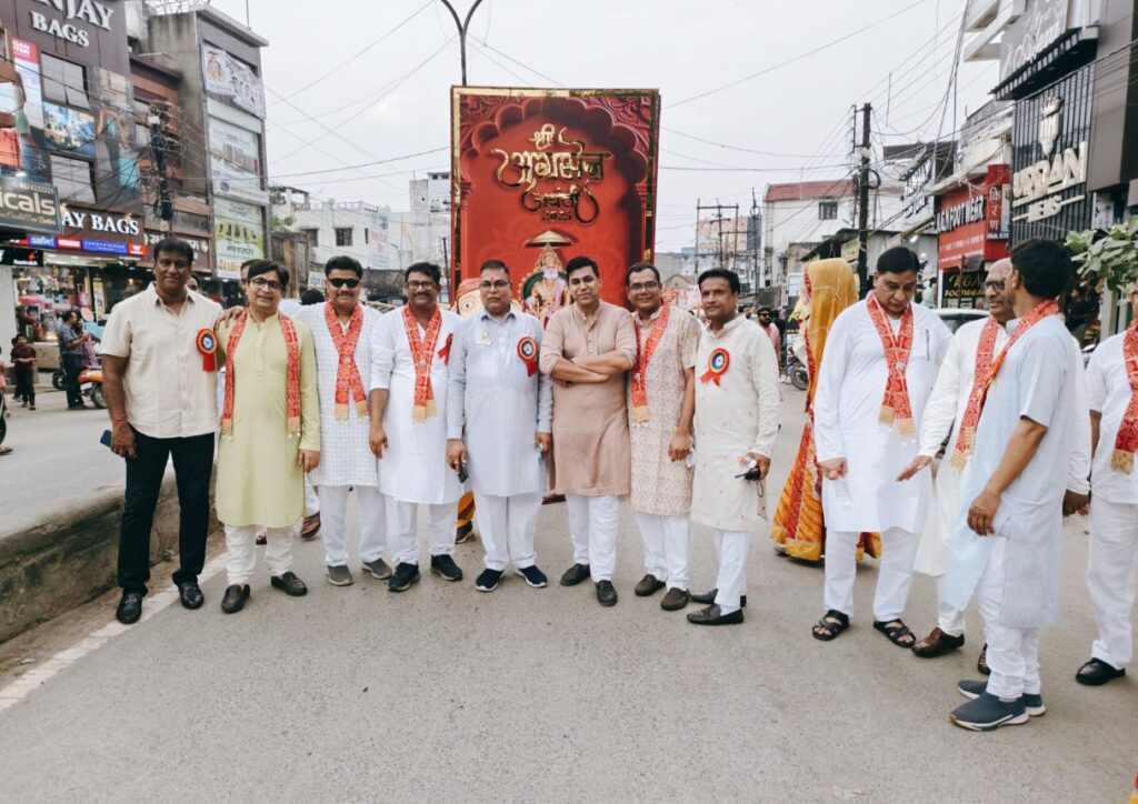 महिलाएं साड़ियां में तथा पुरुष कुर्ता पजामा पारंपरिक वेशभूषा में शोभायात्रा में शामिल हुए जिसमें समाज के वरिष्ठ मंगत राय अग्रवाल, नित्यानंद अग्रवाल, दीपक मोदी , शिव अग्रवाल,परसराम अग्रवाल, सुनील संथालिया, सुनील सोथालिया,