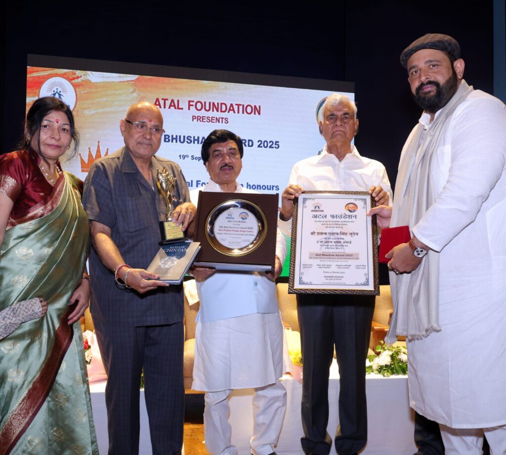 नई दिल्ली-[जनहित न्यूज] प्रधानमंत्री संग्रहालय में आयोजित राष्ट्रीय अटल फाउंडेशन के भव्य समारोह में अखिल भारतीय घर वापसी प्रमुख प्रबल प्रताप सिंह जूदेव को प्रतिष्ठित अटल भूषण पुरस्कार से अलंकृत किया गया।