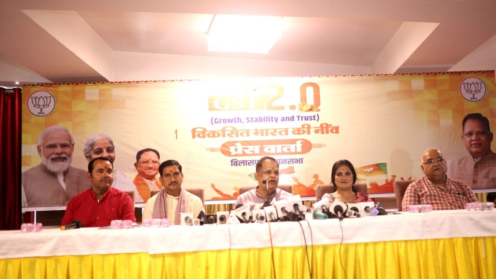 बिलासपुर-[जनहित न्यूज] प्रधानमंत्री नरेन्द्र मोदी के नेतृत्व में 3 सितम्बर 2025 को 56 वीं जीएसटी काउंसिल की बैठक में लिए गए फैसलों को देश की कर व्यवस्था का सबसे बड़ा सुधार बताते हुए पूर्व मंत्री एवं नगर विधायक अमर अग्रवाल ने 22 सितंबर को हुए प्रेस वार्ता में कहा कि यह कदम आम जनता, किसानों और व्यापारियों सभी को राहत देगा और अर्थव्यवस्था को नई गति प्रदान करेगा।