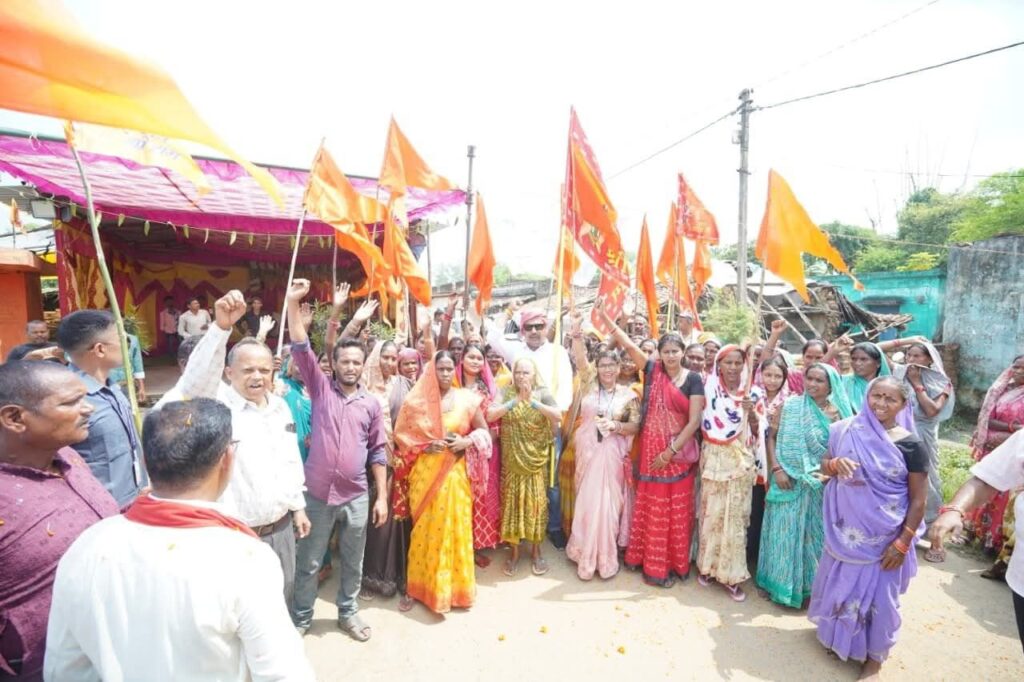 ध्वजा थामें विधायक को देख लोगों में रहा कौतूहल ग्रामीणों ने किया स्वागत…