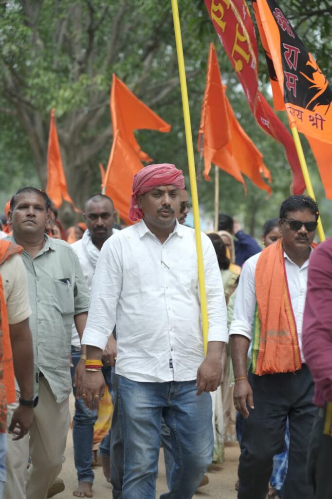 बिलासपुर-[जनहित न्यूज] ध्वजायात्रा का नाम देकर बेलतरा विधायक सुशांत शुक्ला द्वारा की जा रही पदयात्रा पहले ही दिन से लोगो के बीच चर्चा का विषय बन गई क्षेत्र के बड़े जनप्रतिनिधि को हांथ में ध्वज लिए सतत पैदल चलते देखना कोई आम नज़ारा नहीं था जिसने भी देखा उनके लिए यह दृश्य किसी कौतूहल से कम न था उमस भरी गर्मी के बीच दिन की दुपहरी में भक्ति के रंग से सराबोर पैदल चल रहे विधायक सुशांत शुक्ला राहगीरों के लिए आकर्षक का केंद्र बने रहे उनकी यात्रा जिस गांवों से होकर गुजरी वहां के लोगों का ध्यान अपनी ओर खींचा उनके साथ पैदल चलने वालों का एक बड़ा जत्था है जो हाथों में भगवा ध्वज लिए वातावरण को और भी मोहक बना रहे हैं।