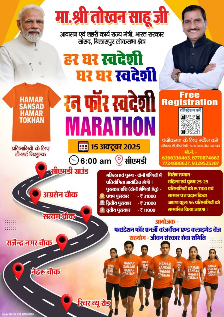 ‘रन फॉर स्वदेशी’ मैराथन… आत्मनिर्भर भारत और स्वदेशी के संदेश के साथ बिलासपुर में दौड़ेगा देशभक्ति का जज़्बा…!