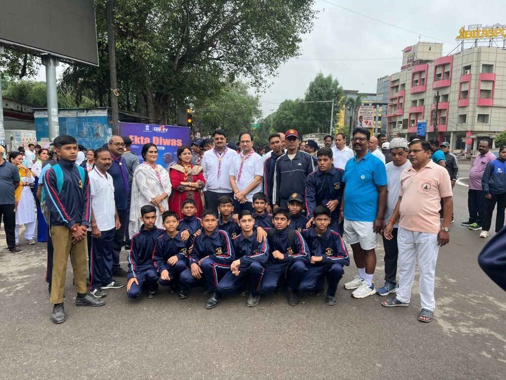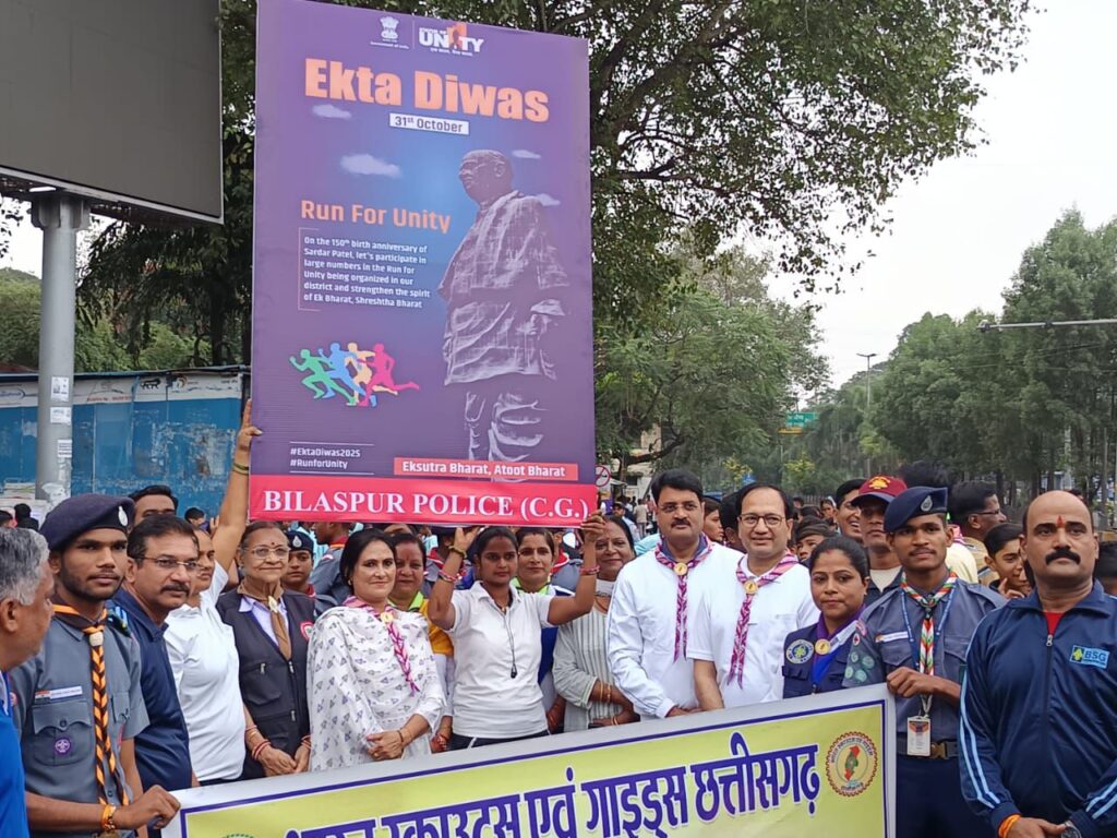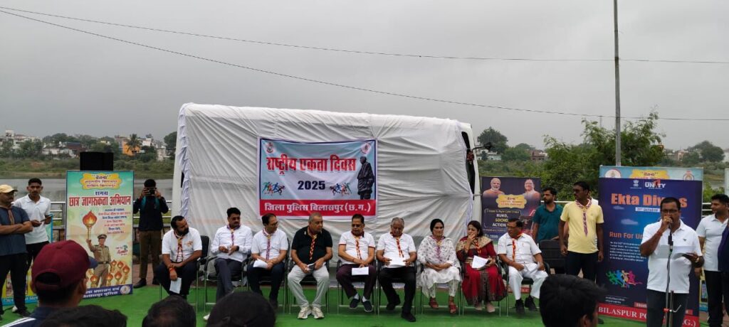 देश के प्रथम उप प्रधानमंत्री लौह पुरूष सरदार वल्लभभाई पटेल की 150वीं जयंती के अवसर पर राष्ट्रीय एकता दिवस के अंतर्गत रन फॉर यूनिटी (एकता दौड़) कार्यक्रम का भव्य आयोजन जिला प्रशासन द्वारा किया गया। इस अवसर पर जनप्रतिनिधियों, अधिकारी, कर्मचारी और बच्चों में एक साथ नेहरू चौक से रिवर व्यू तिरंगा झंडा व्यू प्वाईंट तक एकता दौड़ में शामिल होकर एक भारत, श्रेष्ठ भारत का संदेश दिया। रन फॉर यूनिटी दौड़ को बिलासपुर विधायक अमर अग्रवाल ने हरी झंडी दिखाई।