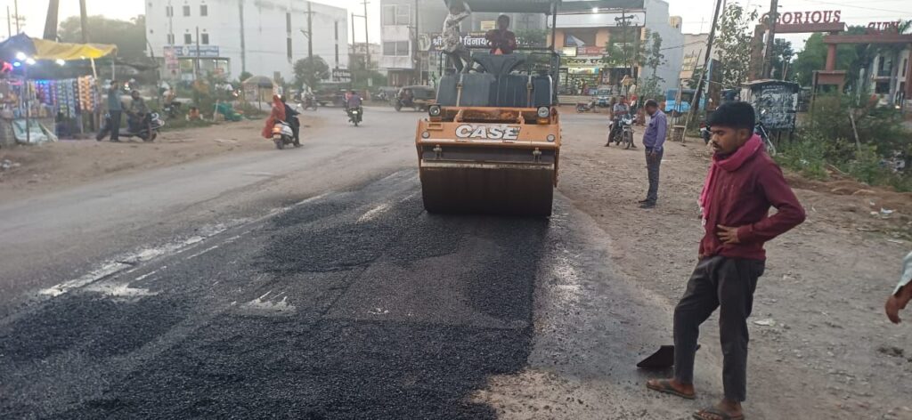 बिलासपुर-[जनहित न्यूज] लोक निर्माण विभाग द्वारा जिले के सड़कों के मरम्मत का काम युद्धस्तर पर प्रारंभ कर दिया है। उप मुख्यमंत्री एवं छत्तीसगढ़ शासन के लोक निर्माण मंत्री अरूण साव ने खराब सड़कों का सुगम आवागमन के अनुरूप सुधार करने के निर्देश दिए है। जिसके लिए माह दिसम्बर 2025 तक मरम्मत के कार्य पूरे करने का लक्ष्य निर्धारित किया गया है। वर्तमान में लोक निर्माण विभाग के संभाग क्रमांक 1 के अंतर्गत जिले के विभिन्न मार्गाें में बी.टी. पेच रिपेयर का कार्य जारी है। मोपका, खैरा, गतौरा, जयरामनगर मार्ग में बी.टी. पेच का काम 6 नवम्बर से शुरू कर दिया गया है और कार्य प्रगति पर है। शेष बी.टी. पेच के कार्य इस साल के अंत तक पूरे कर लिये जाएंगे।