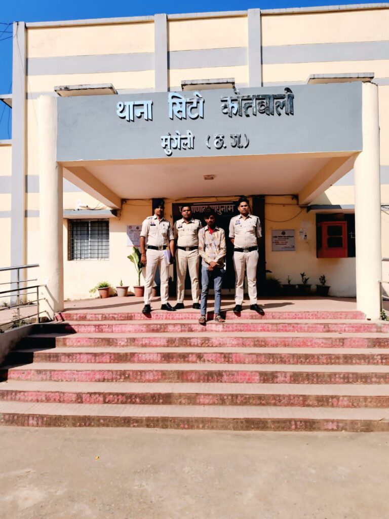 थाना सिटी कोतवाली मुंगेली में दर्ज अपराध क्रमांक 486/2025 में नाबालिग बालिका (आयु 16 वर्ष) को बहला-फुसलाकर भगाकर ले जाने व दैहिक शोषण के मामले में पुलिस ने त्वरित कार्रवाई करते हुए आरोपी उमेश उर्फ विक्की राय पिता सुरेश (आयु 19 वर्ष), निवासी नवागांव घुठेरा, थाना सिटी कोतवाली मुंगेली को भोपाल (म.प्र.) से गिरफ्तार किया। आरोपी को न्यायिक रिमाण्ड पर जेल भेजा गया है।
