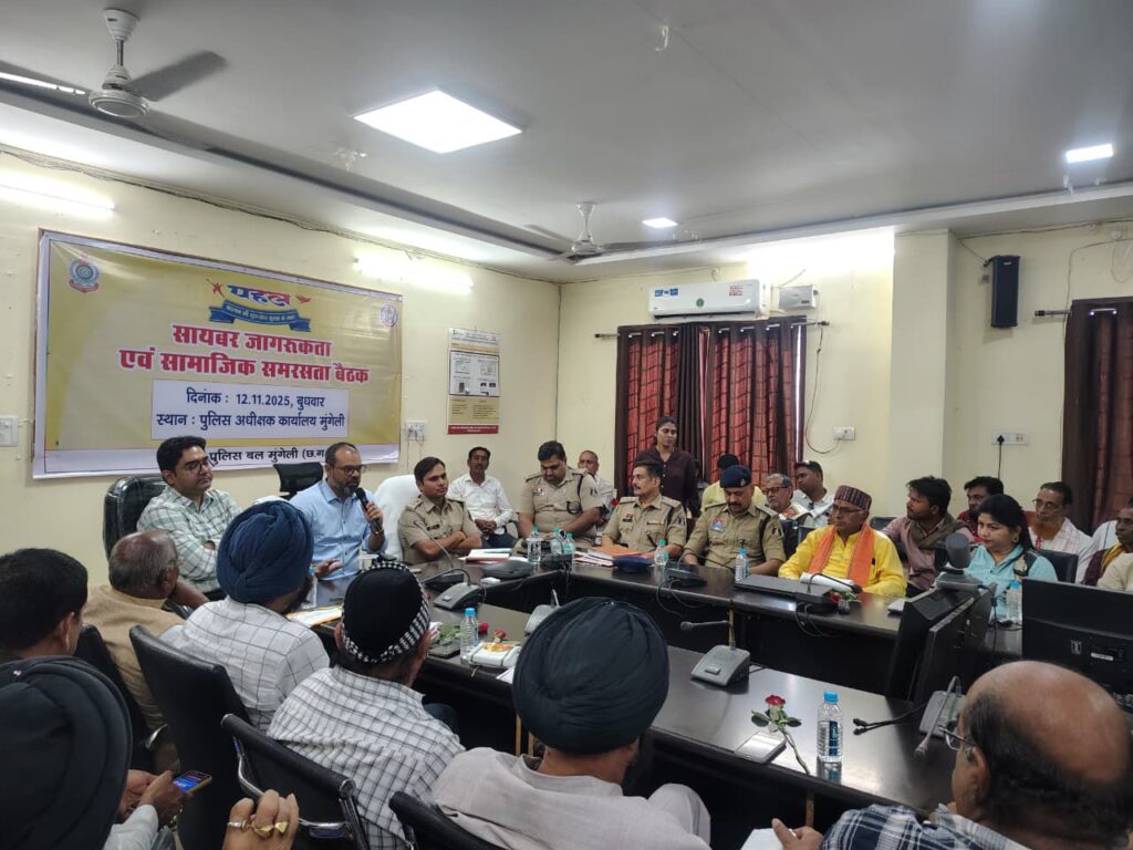 पुलिस अधीक्षक कार्यालय मुंगेली के संवाद सभा कक्ष में आयोजित इस बैठक में जिला कलेक्टर कुंदन कुमार (भा.प्र.से.), पुलिस अधीक्षक भोजराम पटेल (भा.पु.से.), तथा जिला पंचायत सीईओ श्री प्रभाकर पांडेय की उपस्थिति रही। बैठक में जिले के 150 से अधिक सर्व समाज प्रमुख एवं सामाजिक प्रतिनिधि शामिल हुए।