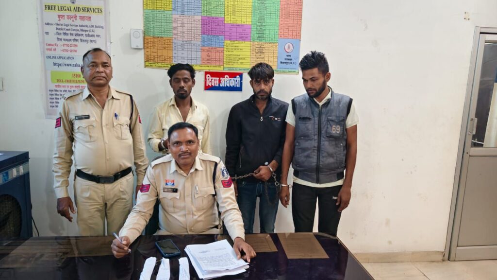 सूचना मिलते ही पुलिस टीम मौके पर पहुँची और तीनों व्यक्तियों को हिरासत में लिया। पूछताछ में उन्होंने अपना नाम क्रमशः बताया