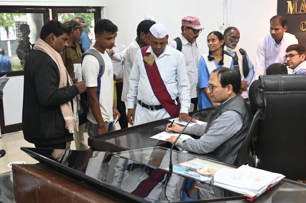 बिलासपुर-[जनहित न्यूज] कलेक्टर संजय अग्रवाल ने साप्ताहिक जनदर्शन में आज दूर-दराज से पहुंचे ग्रामीणों की फरियाद सुनी। उन्होंने एक-एक कर प्रत्येक व्यक्ति से मुलाकात कर उनका आवेदन लिया और आवश्यक कार्रवाई के लिए अधिकारियों को निर्देशित किया। लोगों ने जनदर्शन में व्यक्तिगत एवं सामुदायिक हित से जुड़े विषयों को लेकर जिला प्रशासन का ध्यान आकृष्ट करते हुए आवेदन दिया। जनदर्शन में आज लगभग 50 आवेदन प्राप्त हुए। नगर निगम कमिश्नर अमित कुमार और सीईओ जिला पंचायत संदीप अग्रवाल ने लोगों की समस्याओं को सुना।