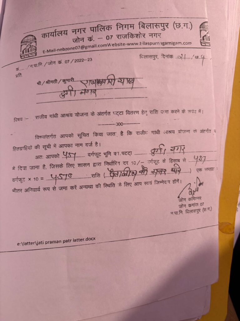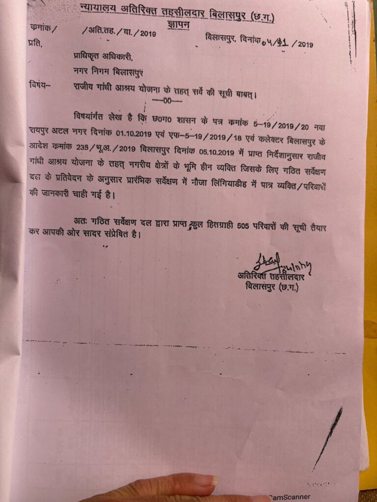 बिलासपुर लिंगीहाडीह क्षेत्र में रहने वाले 550 गरीब परिवार एक बार फिर विस्थापन के डर से सहमे हुए हैं। वर्ष 2019 में कांग्रेस सरकार द्वारा राजीव गांधी आश्रय योजना के तहत इन परिवारों का बाकायदा सर्वे कर पट्टा वितरित किया गया था। इतना ही नहीं सरकार ने शुल्क लेकर रसीद भी जारी की थी, जिसके आधार पर इन परिवारों ने अपने आशियाने और जीवन की उम्मीदों को दोबारा खड़ा किया।