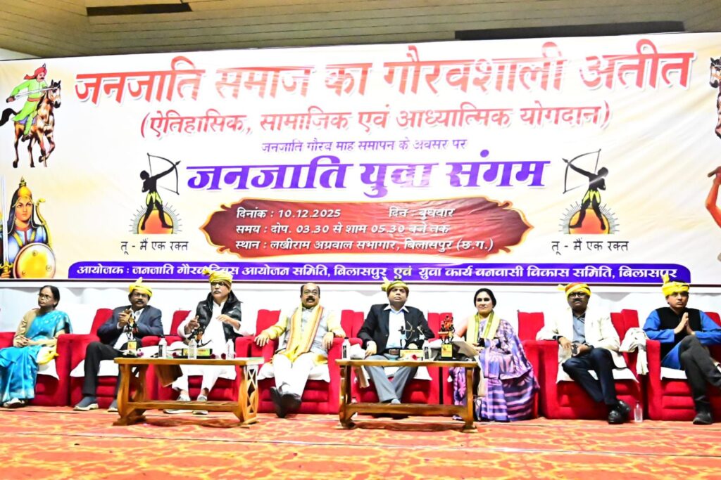 जनजाति गौरव माह के समापन अवसर पर यह कार्यक्रम जनजाति गौरव दिवस आयोजन समिति एवं युवा कार्य वनवासी विकास समिति के संयुक्त तत्वावधान में आयोजित किया गया। कार्यक्रम की अध्यक्षता गुरु घासीदास केंद्रीय विश्वविद्यालय के कुलपति प्रो. आलोक कुमार चक्रवाल ने की। इस अवसर पर महापौर श्रीमती पूजा विधानी, वैभव सुरंगे, डॉ. चंद्रशेखर उइके सहित जनजातीय समाज के अनेक गणमान्य नागरिक उपस्थित रहे।