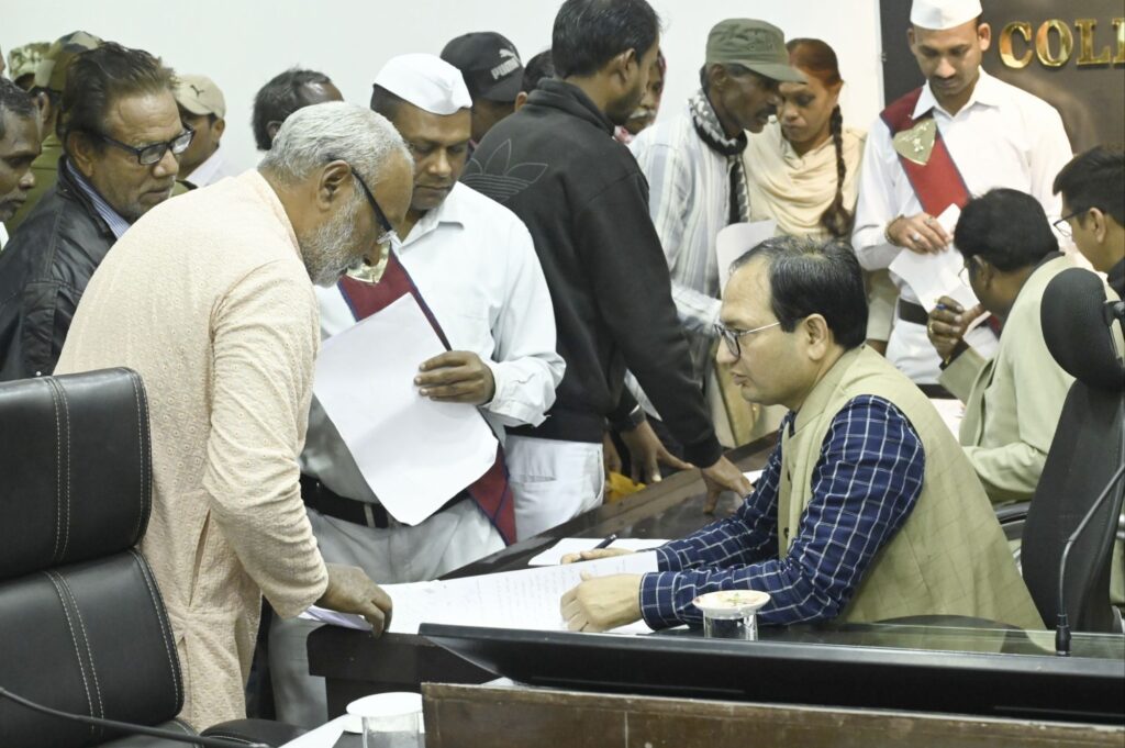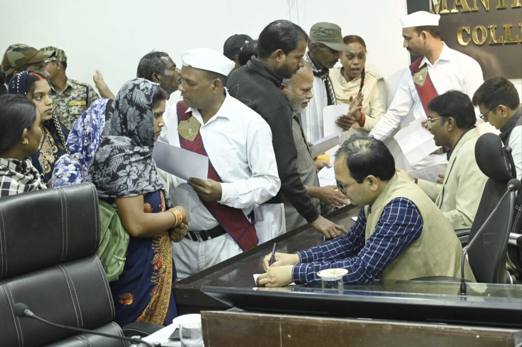 बिलासपुर-[जनहित न्यूज़] कलेक्टर संजय अग्रवाल ने साप्ताहिक जनदर्शन में आज दूर-दराज से पहुंचे ग्रामीणों की फरियाद सुनी। उन्होंने जनदर्शन में आए प्रत्येक व्यक्ति से उनका आवेदन लिया और आवश्यक कार्रवाई के लिए अधिकारियों को निर्देशित किया। लोगों ने जनदर्शन में व्यक्तिगत एवं सामुदायिक हित से जुड़े विभिन्न विषयों को लेकर समस्याओं के निराकरण के लिए आवेदन दिया। नगर निगम कमिश्नर प्रकाश कुमार सर्वे और जिला पंचायत सीईओ संदीप अग्रवाल ने भी लोगों की समस्याओं को सुना।
