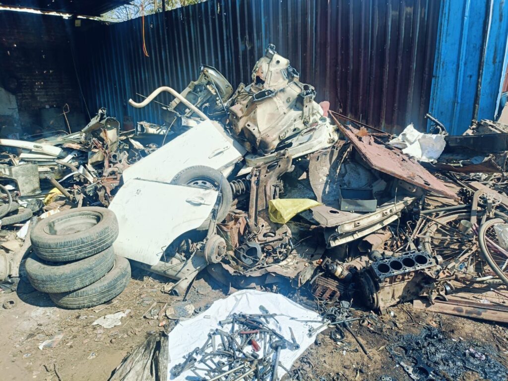 छापे के दौरान दुकान से बड़ी मात्रा में मोटरसाइकिल, कार, ट्रक एवं अन्य वाहनों के कटे हुए पार्ट्स, लोहे की सामग्री, वजन मशीन, लोहे काटने की मशीन, गैस कटर, गैस सिलेंडर एवं कंप्रेशर मशीन बरामद की गई। पुलिस ने दुकान को मौके पर ही विधिवत सील कर दिया।