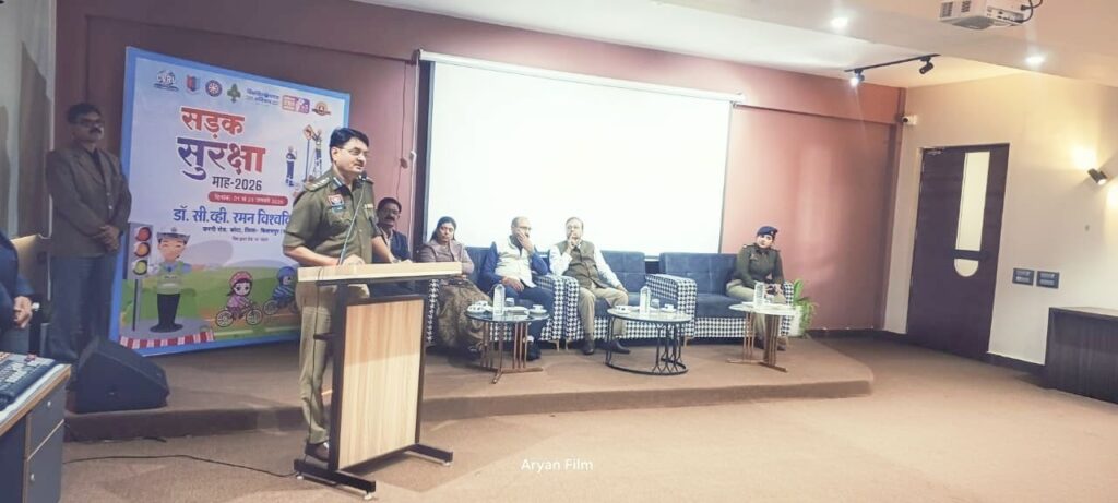 बिलासपुर आज रमन विश्वविद्यालय कोटा बिलासपुर में सड़क सुरक्षा माह 2026 के अनुक्रम में सड़क सुरक्षा जागरूकता कार्यक्रम का आयोजन किया गया