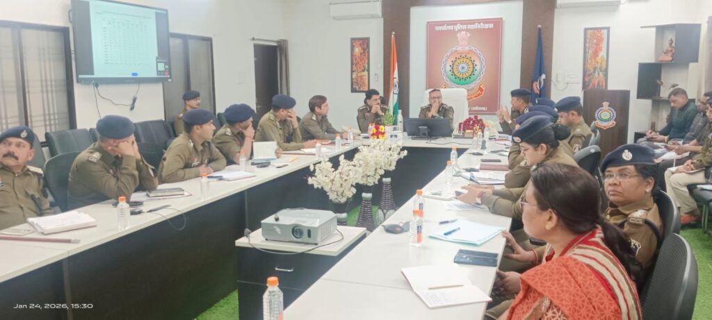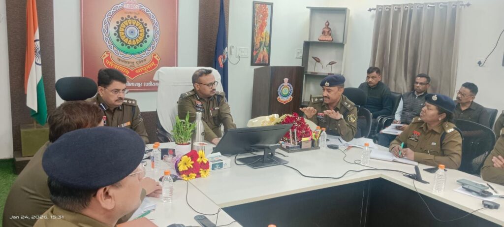 बिलासपुर-[जनहित न्यूज़] मोबाईल एप एवं हाईटेक तकनीकों का उपयोग पुलिसिंग में बढ़ाये जाने का दिया जोर। आज दिनांक 24.01.2026 को बिलासपुर रेंज के नवपदस्थ पुलिस महानिरीक्षक राम गोपाल गर्ग, भा.पु.से. के द्वारा बिलासपुर रेंज अंतर्गत पुलिस अधीक्षकों सहित राजपत्रित अधिकारियों की हाईब्रिड मोड में समीक्षा बैठक ली गई। बैठक में वरि.पुलिस अधीक्षक/पुलिस अधीक्षकों द्वारा अपने-अपने जिले से संबंधित बिन्दुओं पर एजेण्डावार प्रस्तुतिकरण दिया गया।