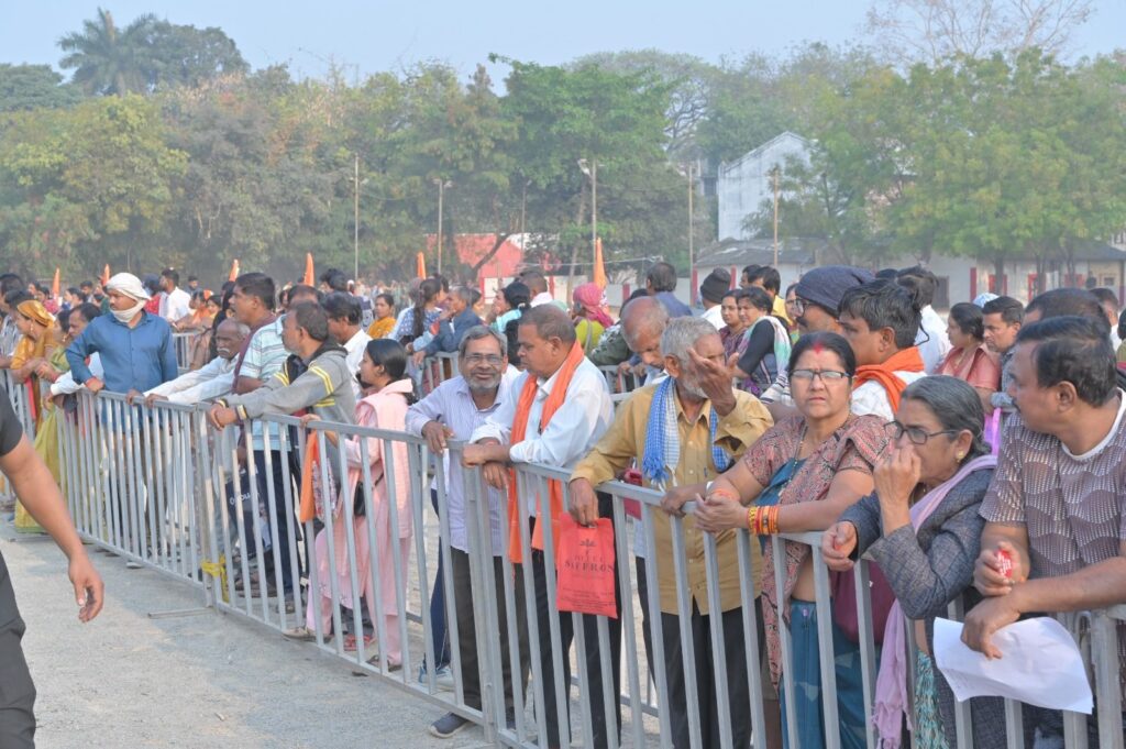 रात तीन बजे से ही दर्शनार्थी समिति के बनाएं हुए व्यवस्था में कतारबद्ध तरीके से अपने बारी का इंतजार करने लगे थे , ताकि उसका पंजीयन सुनिश्चित हो सके। सूर्योदय होते ही भगवा सजे काउंटर पर जय श्री राम के नारों की गूंज शुरू हो गई। भीड़ को देखते हुए पहले आओ पहले पाओ की तर्ज पर साढ़े सात बजे से ही 1008 टोकन बांट दिए गए।